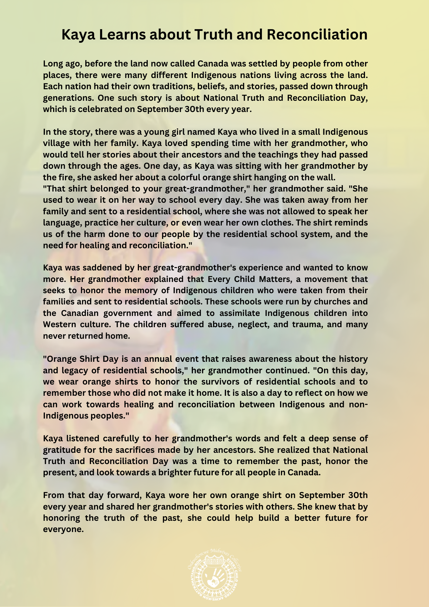 Kaya Learns about Truth & Reconciliation